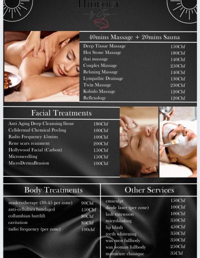 Parce que prendre soin de soi, c’est se respecter profondément, nous vous offrons une expérience où détente, beauté et équilibre ne font plus qu’un.